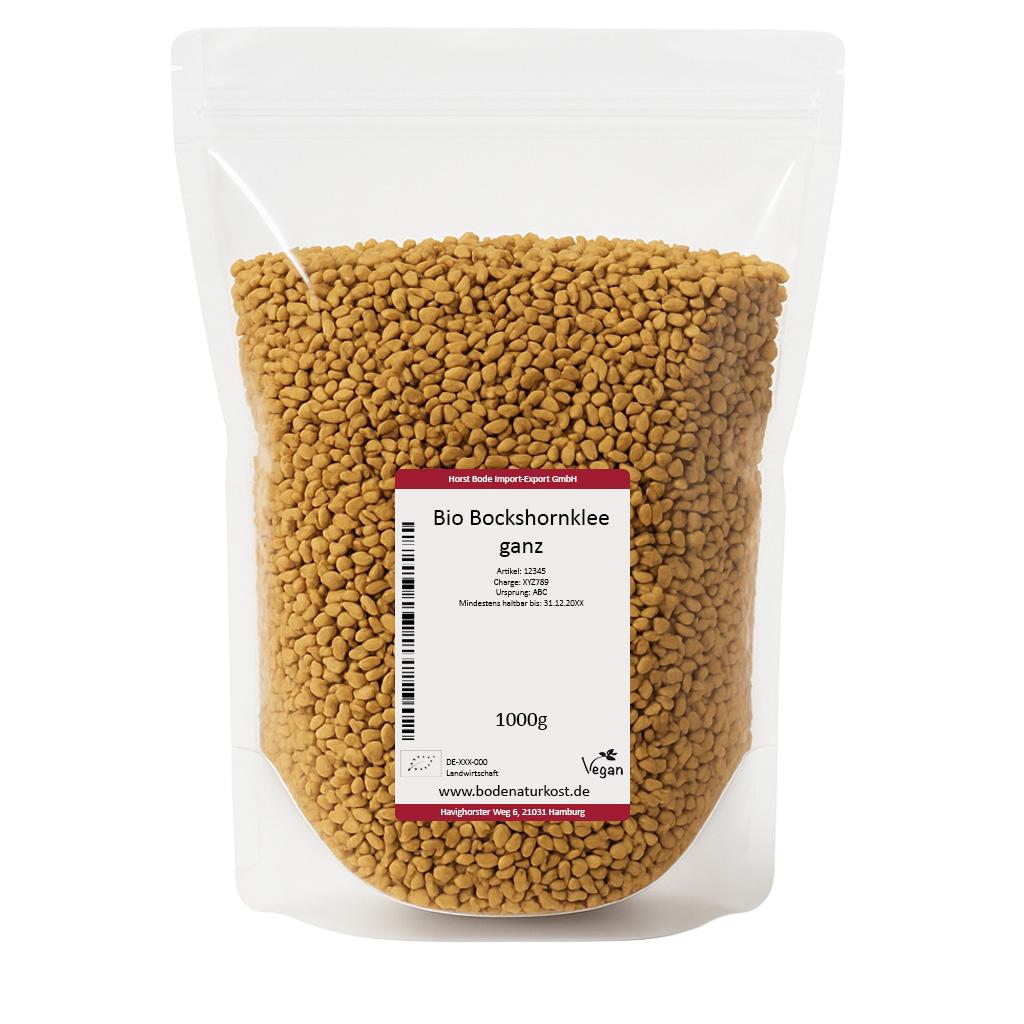 Gehele zaden van bio bockshornklee. De zaden zijn licht- tot middelbruin en hebben een langdurige, zoet-bittere, scherpe smaak. Hun volle aroma komt tot ontplooiing wanneer ze licht geroosterd worden - hierbij wordt ook de bitterheid verzacht. De zaden doen qua smaak enigszins aan liebstöckel denken en zijn een belangrijk onderdeel van vele currymengsels. Ze zijn geschikt voor het kruiden van